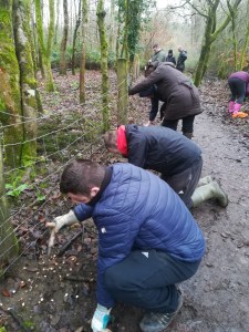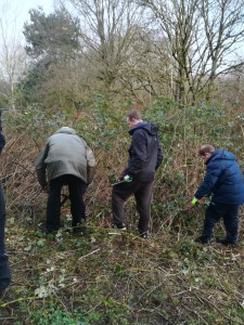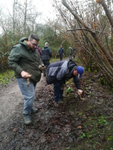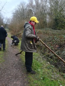We are pleased to report that despite all of the wind and rain that we have encountered this month that we were able to visit seven different sites in Cardiff undertaking a variety of work restoring and maintaining natural habitats , litter picking , removal of non- native plants , planting snow drops and creating a natural habitat amongst other things.